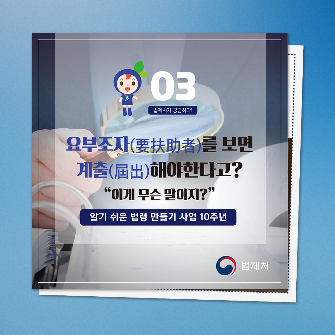 Continue Reading[vc_row][vc_column][vc_column_text]본 디자인은 법제처의 주요 법령을 일반국민들이 알기 쉽게 이해할 수 있도록 카드뉴스로 제작한 디자인입니다. 매우 어려운 법적인 용어를 쉬운 용어로 만들었으며, 친숙한 스토리텔링과 함께 세부적인 정보 표현법으로 시리즈로 제작한 인포그래픽입니다. 총 8편이 제작되었습니다.[/vc_column_text][/vc_column][/vc_row]...