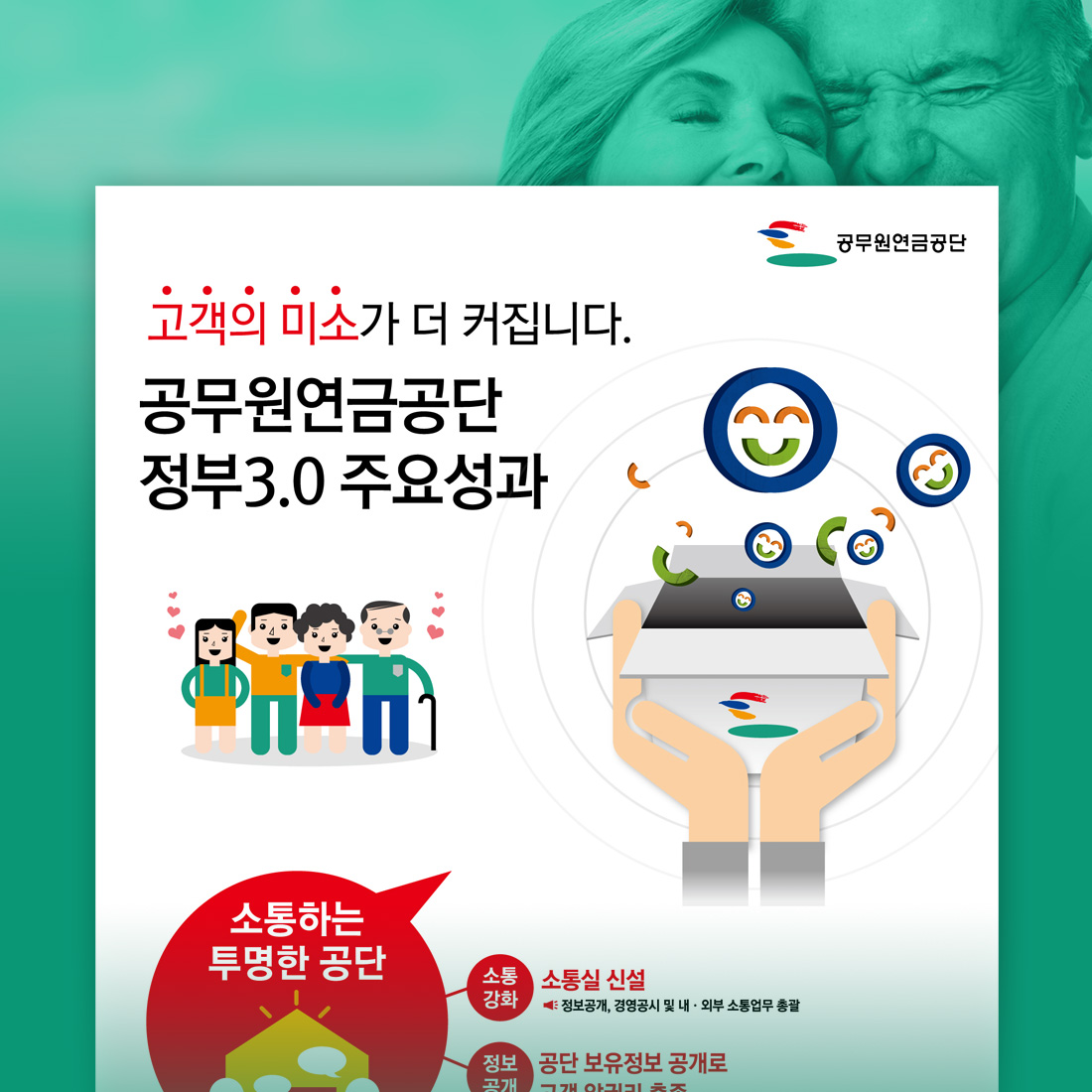 Continue Reading[vc_row][vc_column][vc_column_text] 공무원연금공단에서 추진했던 정부3.0의 추진 실적들을 인포그래픽스로 표현하였습니다. 가족의 미소와 말풍선을 소재로 다양하게 구성하였습니다. [/vc_column_text][/vc_column][/vc_row]...