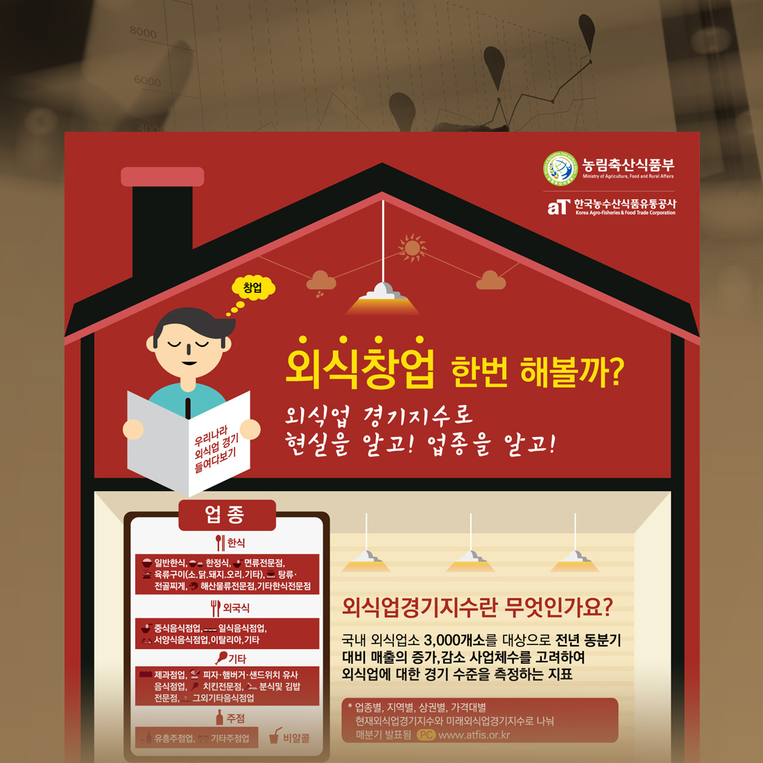 [vc_row][vc_column][vc_column_text] 한국농수산식품유통공사의 외식업 경기지수를 소개하는 인포그래픽입니다. 창업전 외식업의 현황을 한눈에 볼수 있는 다양한 통계를 알기 쉬운 인포그래픽으로 소개하고 있습니다. [/vc_column_text][/vc_column][/vc_row]...