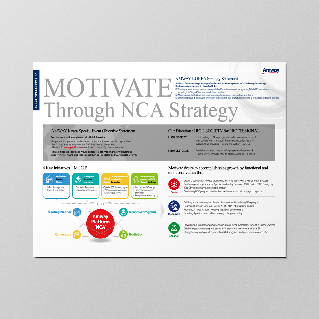 Continue Reading[vc_row][vc_column][vc_column_text]본 디자인은 한국암웨이의 NCA Strategy에 관한 인포그래픽입니다. 다양한 정보를 복합적으로 구성하여 1페이지로 디자인하였습니다. 자세한 정보는 대외비 관계로 비공개합니다.[/vc_column_text][/vc_column][/vc_row]...