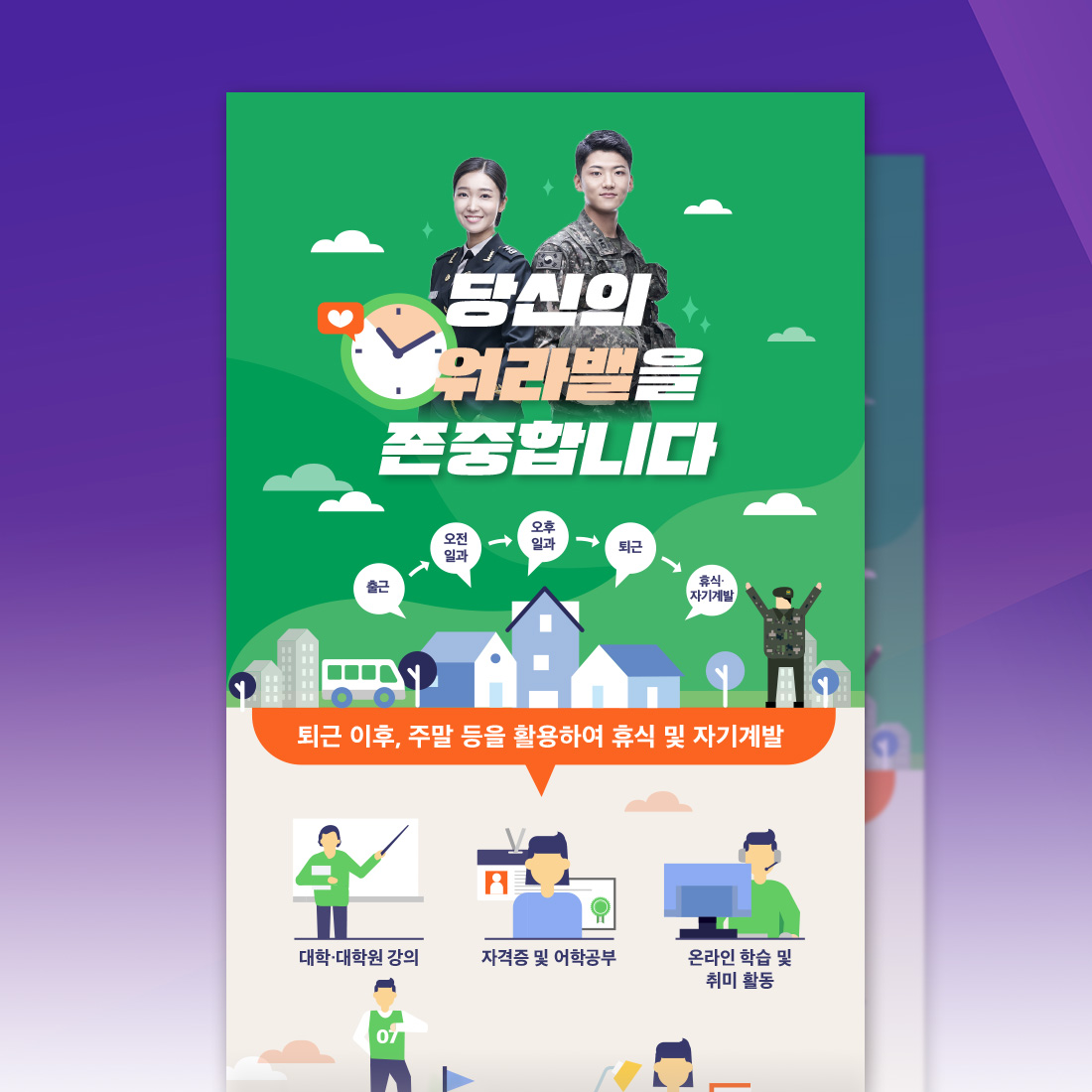 [vc_row][vc_column][vc_column_text]본 인포그래픽은 육군간부의 멋과 매력을 느낄 수 있는 육군 간부의 다양한 직책을 보여주는 이미지형 인포그래픽으로, 육군간부의 역동적인 힘을 느낄 수 있는 사선 형태의 디자인 프레임 사용으로 강한 대한민국 육군을 나타내고 있다.[/vc_column_text][/vc_column][/vc_row]...
